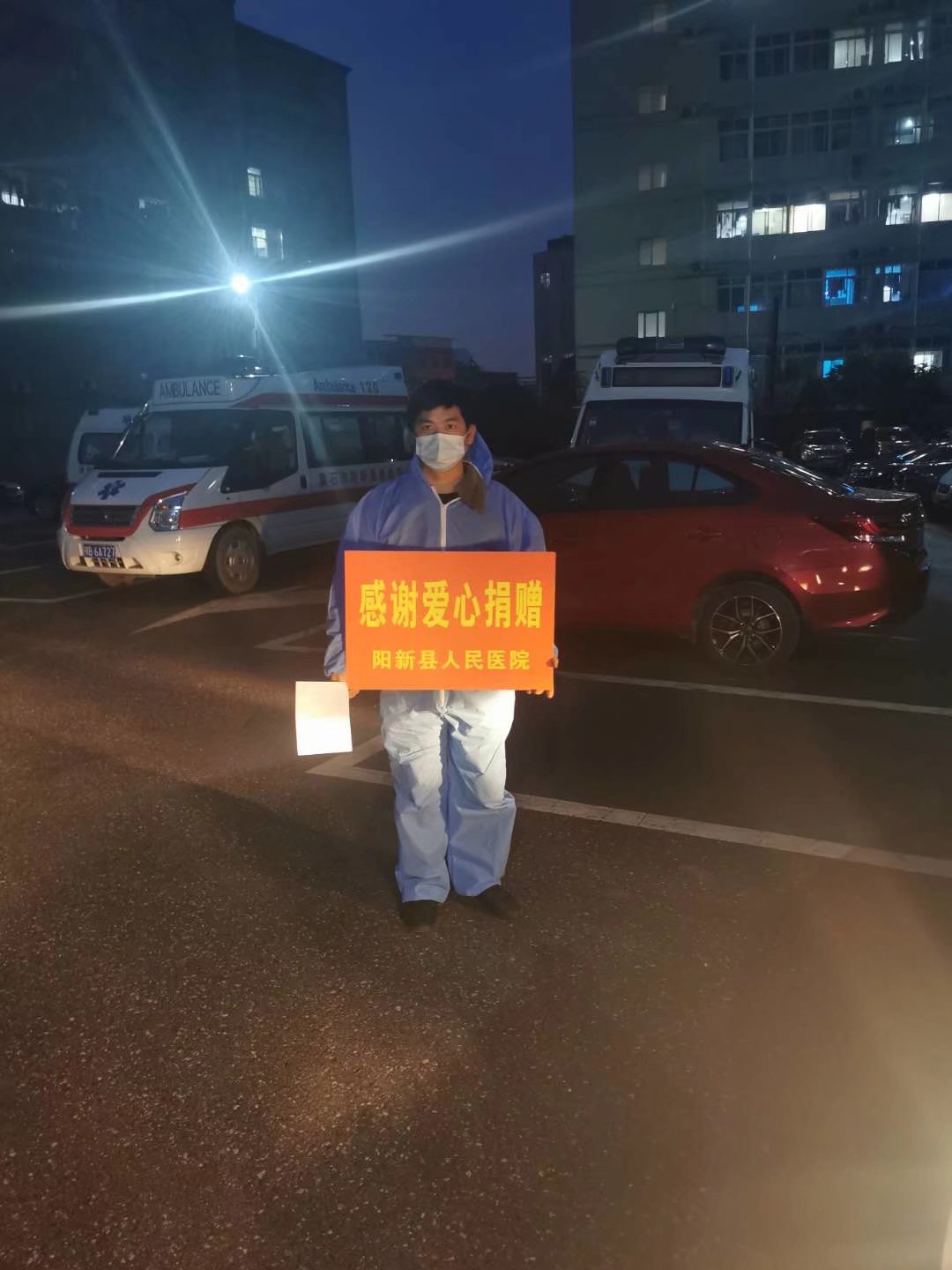 14、華康恒(heng)業捐贈陽(yang)新三醫院口(kou)罩1000只防護服100套;